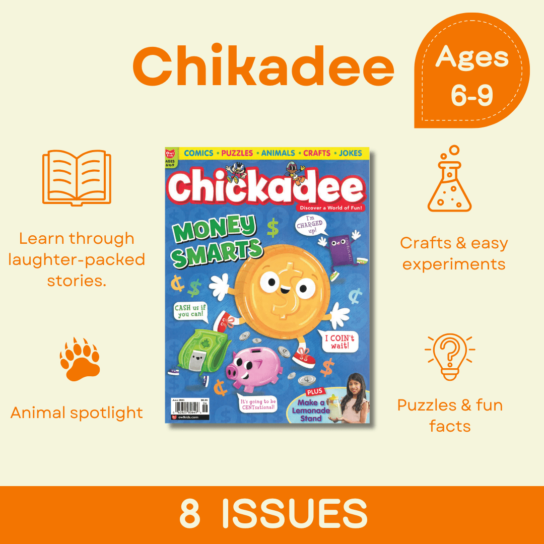 - Brain-teasing puzzles, fun animal facts, unique crafts, simple science experiments, and rich, engaging fiction round out Chickadee’s pages, providing hours of enjoyment, whether read alone or with the help of an adult