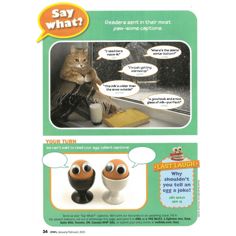 Since 1976, OWL has ignited the curiosities of kids ages 9 to 14. OWL continues to give children access to new information in a fun, age-appropriate and engaging way. OWL Magazine is designed specifically for preteens, and is loaded with tech news, interviews, hands-on building, puzzles, comics and more delivered right to your door.OWL inspires kids